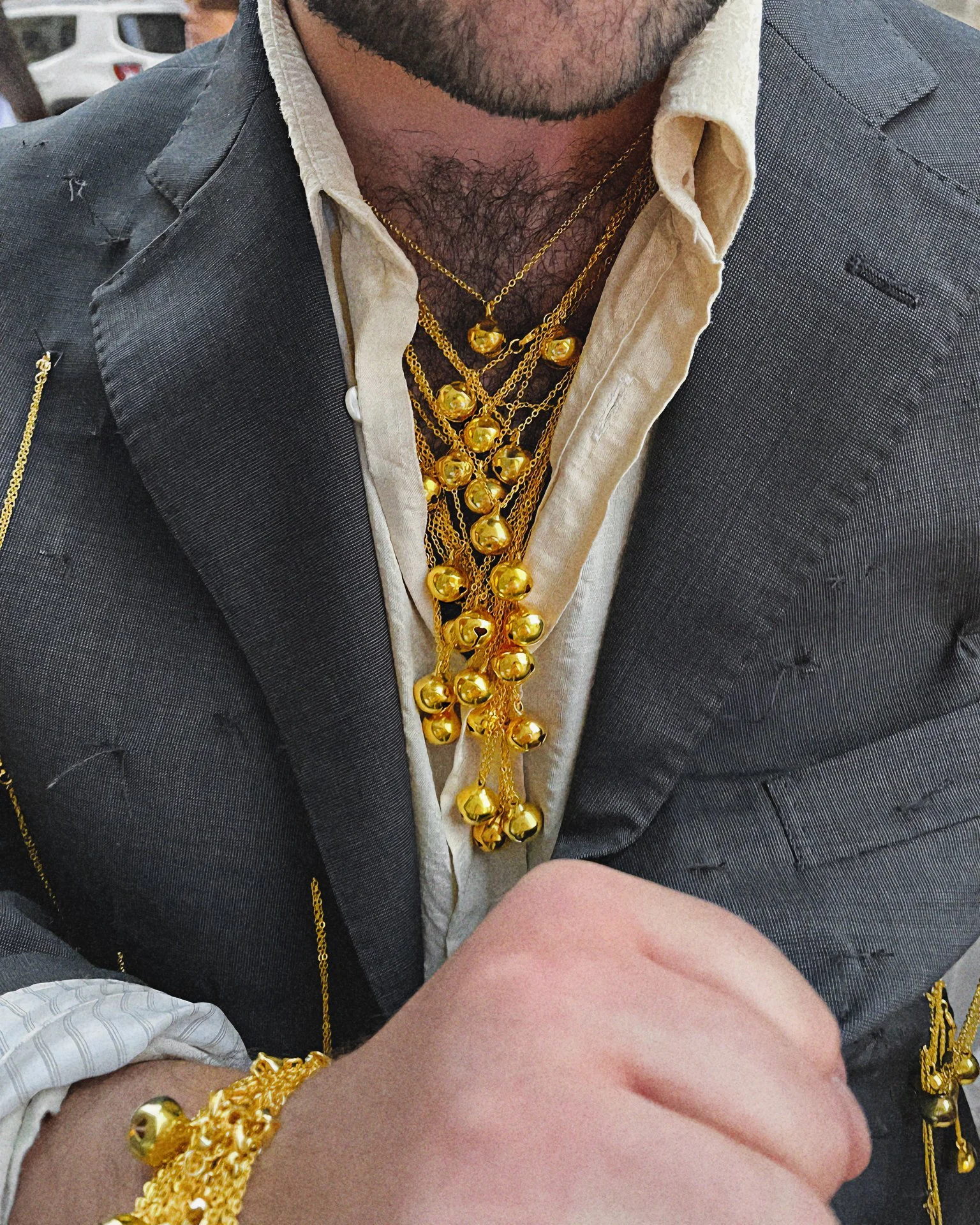 Ecco gli strani, li senti? Le campanelle suonano, i sonagli danzano e la santa verginitΓ del buco del culo di quei veri maschi virili Γ¨ salva, avrebbe detto Mario Mieli. La long performance Oro ai nostri polsi, piombo ai vostri orecchi mostra un momento di contagio identitario, dove lβindividuo diviene ampio, plurimo e sonoro. Il tintinnio si propaga, il corpo si palesa e lo sguardo si dispone. Valerio Eliogabalo Torrisi diventa lβuntore, il profanatore di quella antica virilitΓ , lβamante segreto del luogo che il luogo stesso vuole celare. Ma il contagio Γ¨ veloce, troppo diffuso, e ciΓ² che prima doveva allarmare svanisce, si disperde e si riversa in cartografie del molteplice.